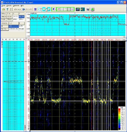 Man beachte, wie gut das DXP-Spektrogramm auch die Signalpause zwischen den beiden Sendungen wiedergibt.