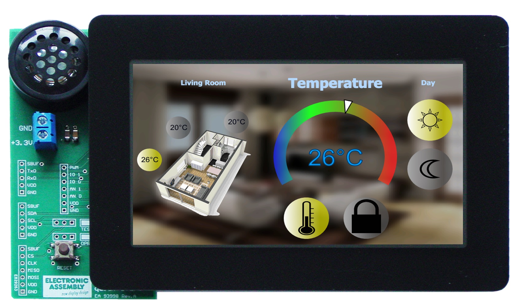 Mit dem Display können eine Vielzahl an Steuerungsaufgaben realisiert werden. Es ist eine interessante Alternative zu GUIs auf z.B. Android- oder Windwos-CE-Basis und bringt bereits viele Ressourcen, wie Audio-, RTC- und SD-Kartenintegration mit. Das Display wird bei IND für Ihr Projekt in der uniTFT-Sprache programmiert.
