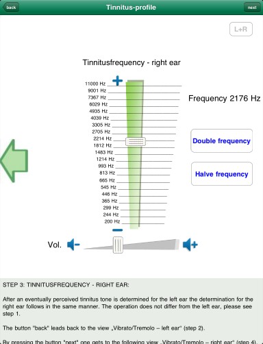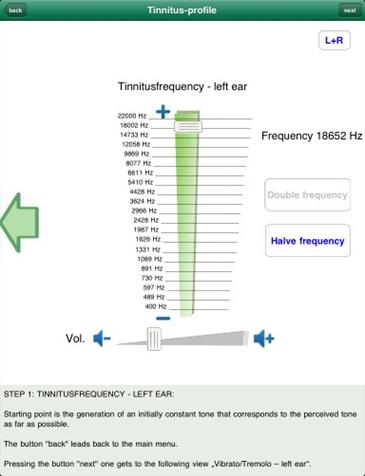 louder, but go back to “start” and choose a different tinnitus frequency. This