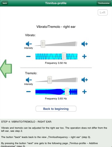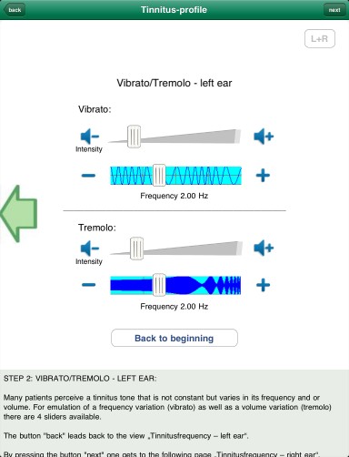 The button  leads back to the view „Vibrato/Tremolo – left ear“, see section 2.4.2.