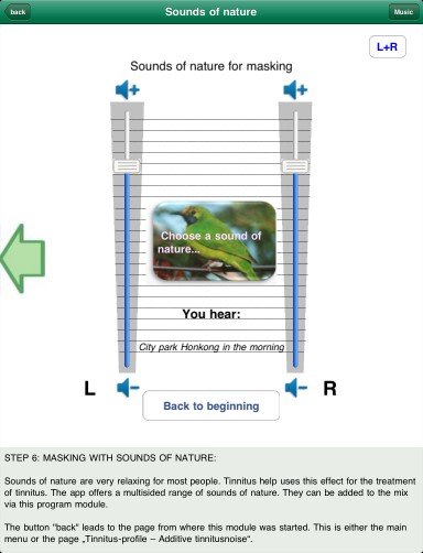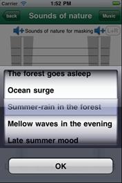 The button  leads to the following page „Masking with sounds of nature“, see next section 2.6.
